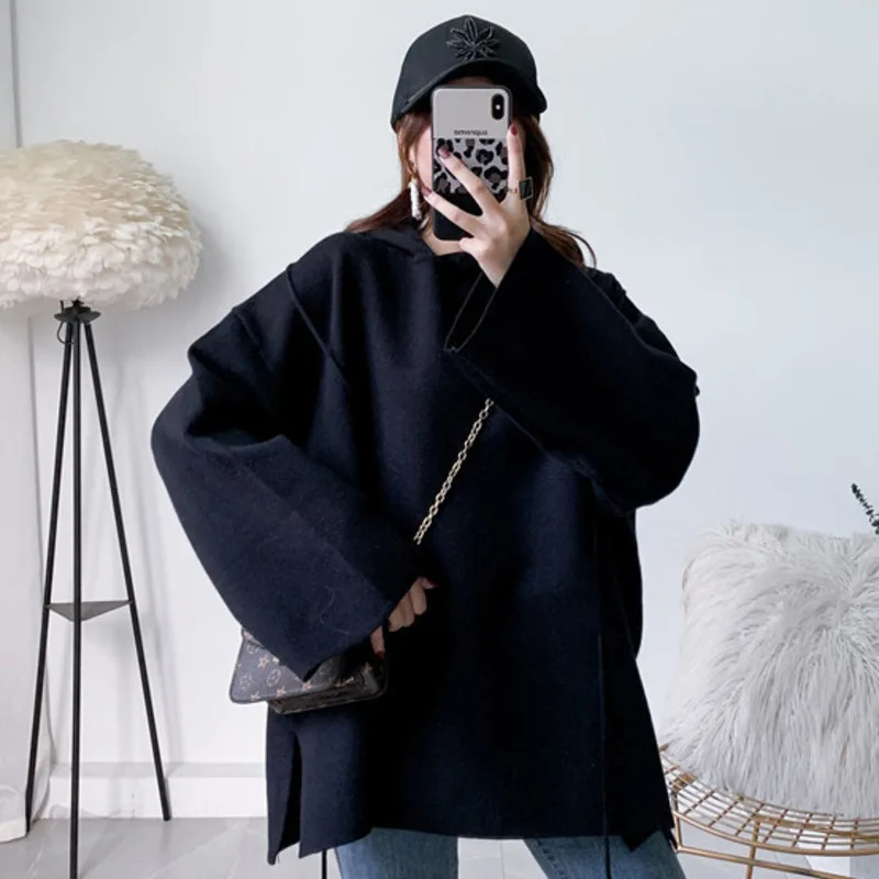 LANMREM Solid Color Round Neck Thick Knitted Pullover Sweater 2020 autumn Winter New Loose Large Size Popular Dress Women PC430
